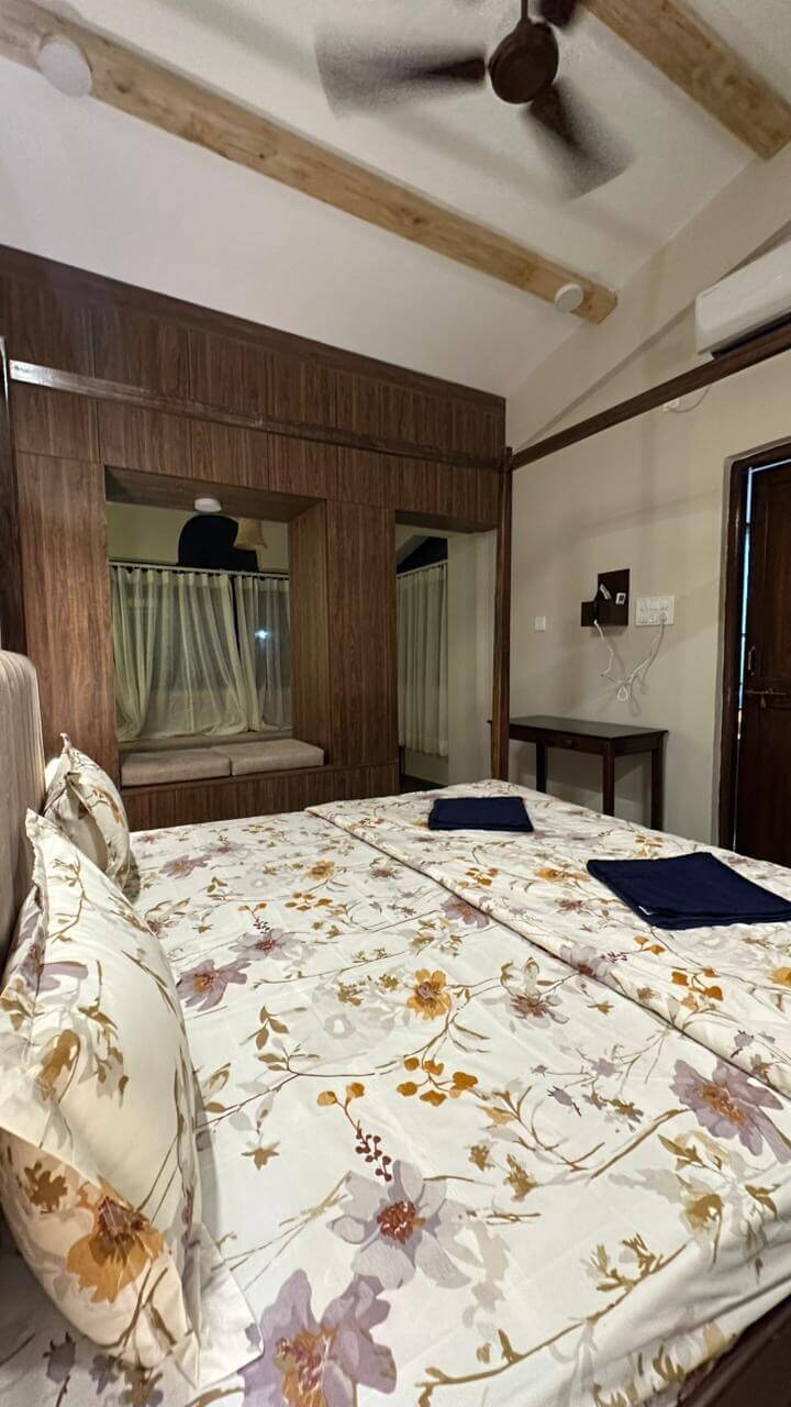 Relax in modern, sun-washed interiors with elegant decor and a soothing seaside charm. This 2BHK home features plush bedrooms, breezy private balconies with green surroundings, high-speed Wi-Fi, and a fully equipped kitchen with fridge, stove & essentials. Only 450 meters from the beach, near top cafes, markets, and vibrant nightlife. Ideal for families & groups (8–10 guests). Book your premium Goa escape today!